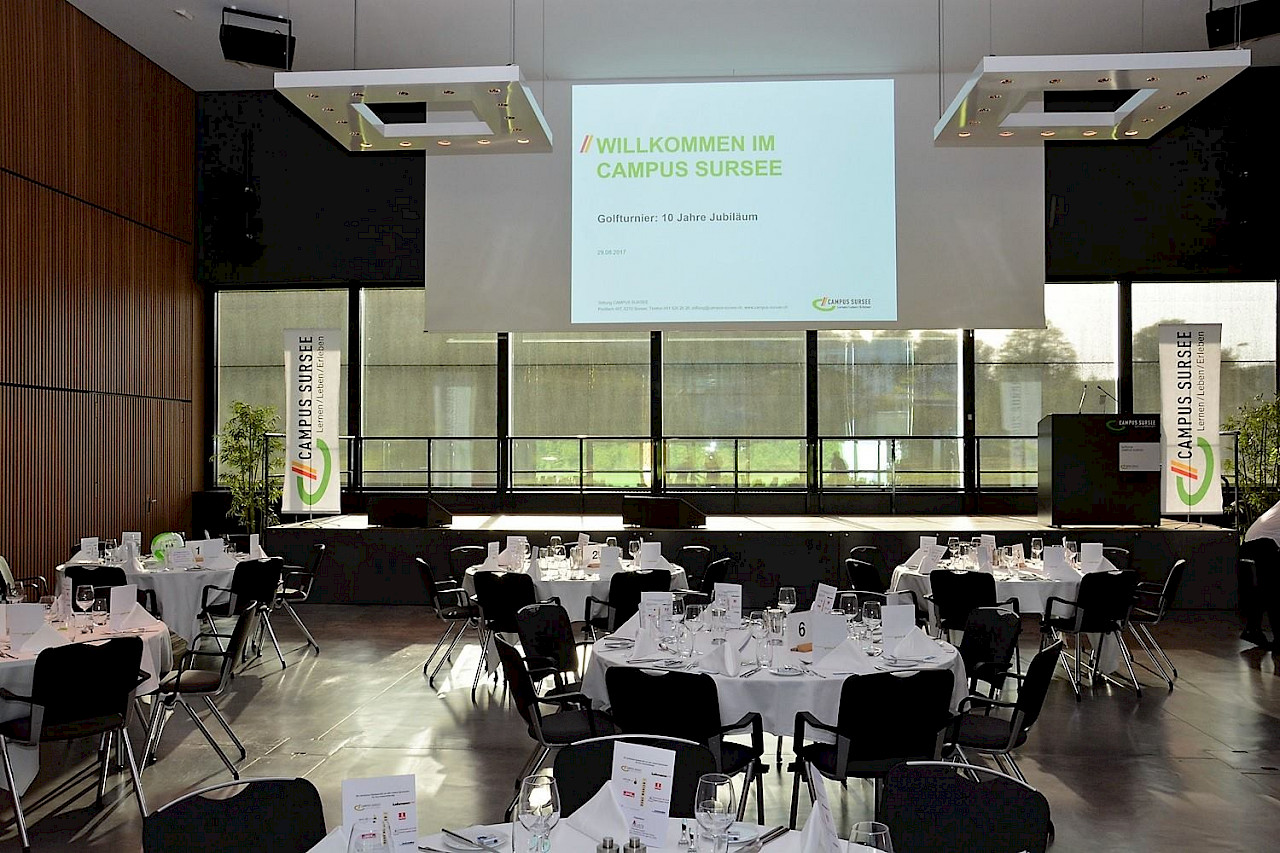 ... und im Campus erstklassig tafeln ...... dann steht das Golfturnier der Schweizer Bauwirtschaft auf dem Programm. Bereits zum 10. Mal traf man sich am 29. August 2017 zunächst im Golfpark Oberkich zum Spiel und später zum Networking-Dinner im Campus Sursee. Organisator war einmal mehr Alexander Eugster Event Management.