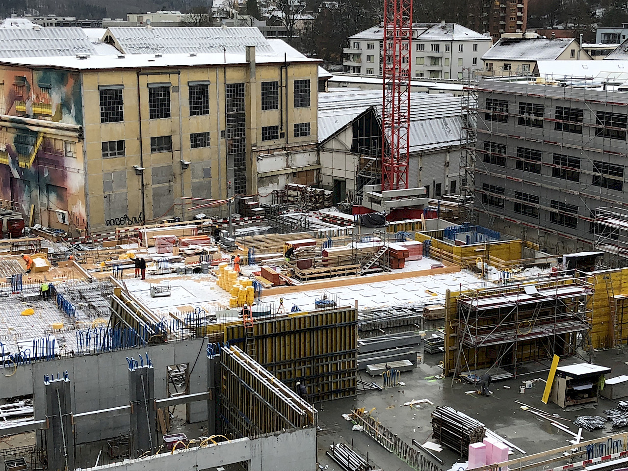 Baustelle ZHAW Winterthur: kalt, aber lebhaft und kommunikativWer jetzt – bei Minustemperaturen und leichtem Schneefall – so emsig und professionell auf einer Baustelle arbeitet wie hier in Winterthur, verdient höchste Anerkennung. Es sind nicht nur klare Pläne und Programme, sondern auch ein eindrücklicher Teamspirit spürbar. Es wird laut, klar und respektvoll kommuniziert und in höchster Effizienz gearbeitet. Ein paar Minuten zuzuschauen, macht grosse Freude – trotz der Kälte.