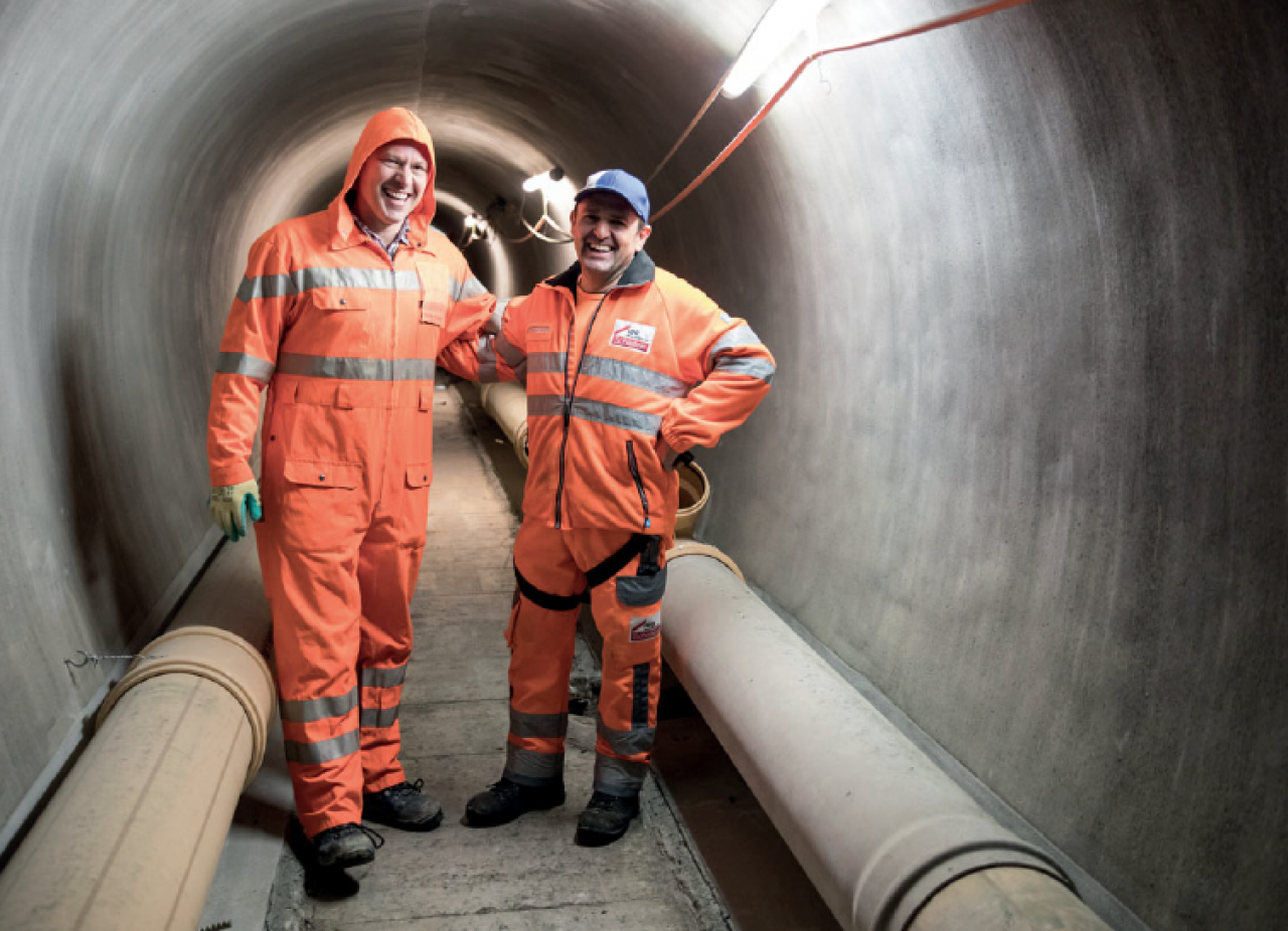 Valery Lorenz im Gespräch mit Schänzlitunnel-Bauführer Rolf Hügli