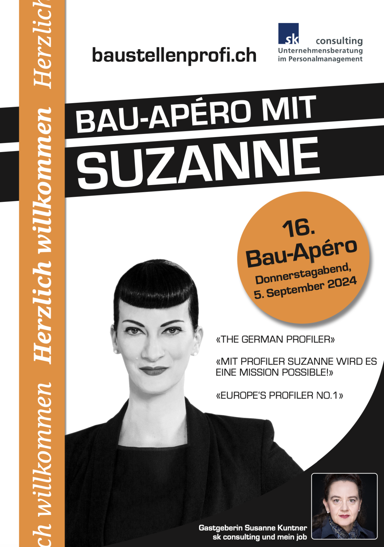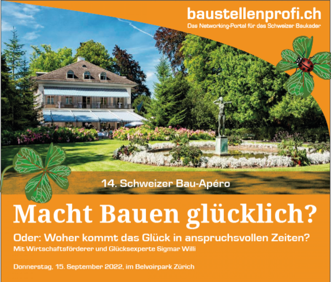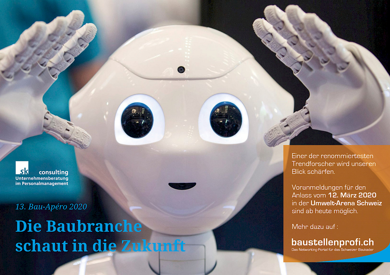 Bauen ist per se Zukunft. Am 12. März 2020 gehen wir allerdings übers Bauen hinaus und wagen einen packenden Blick ins kommenden Jahrzehnt. Begleitet werden wir von einem der namhaftetesten Profis auf diesem Gebiet ... Der 13. Schweizer Bau-Apéro von Gastgeberin Susanne Kuntner sprengt Grenzen und bietet der Schweizer Bauwelt hochstehendes Infotainment inkl. Networking und kulinarischer Häppchen. Die Umwelt-Arena bietet den perfekten Rahmen. Wer sich bereits heute einen der limitierten Plätze sichern möchte, kann dies mit einer Mail an apero@baustellenprofi.ch tun. See you in the future!
