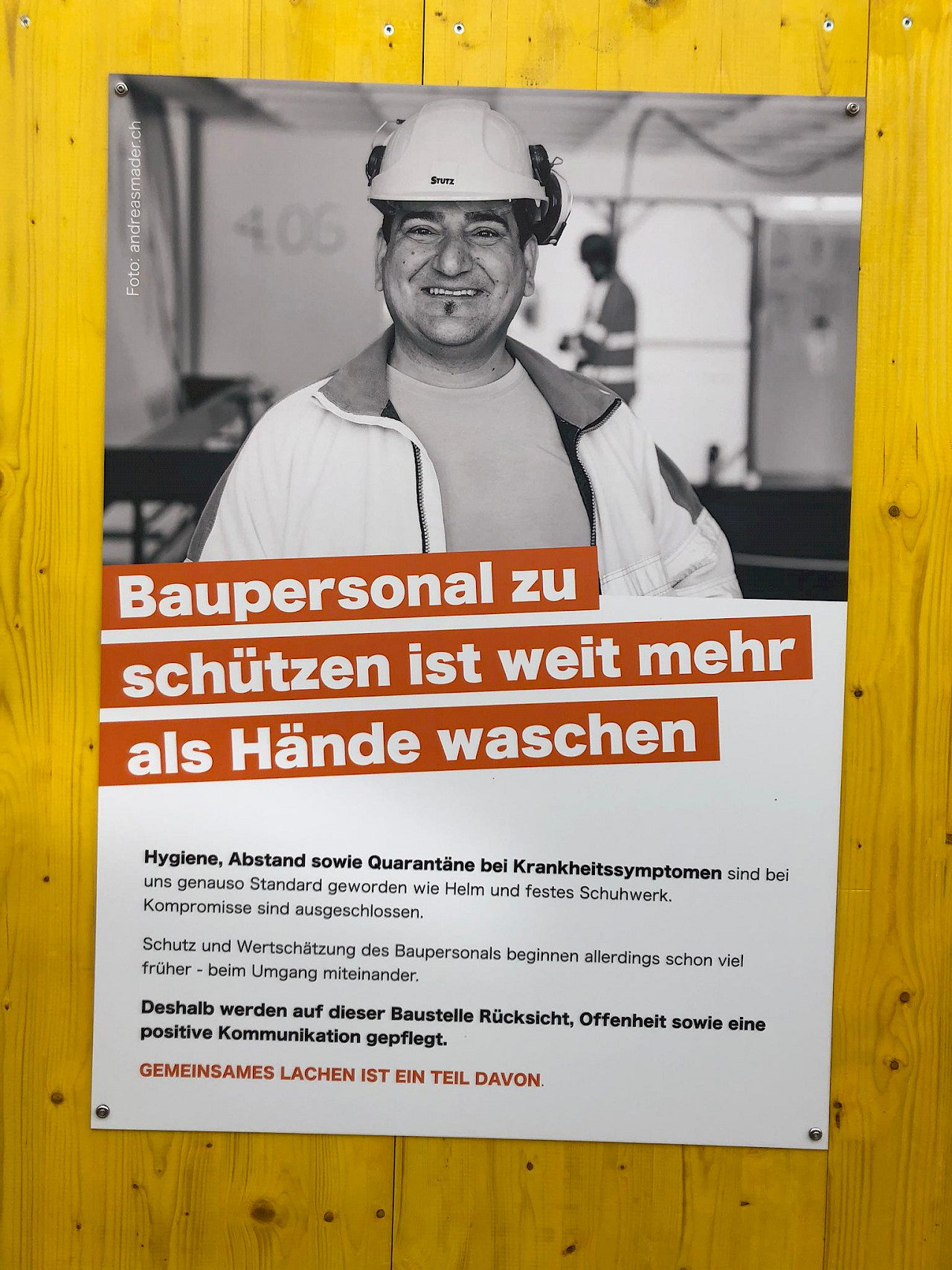Dieses Plakat auf einer grösseren Baustelle mitten in der Winterthurer Altstadt erregt Aufsehen. Kompliment an die Bauleitung für die klare Aussage, der wir als Bauprofis zustimmen.