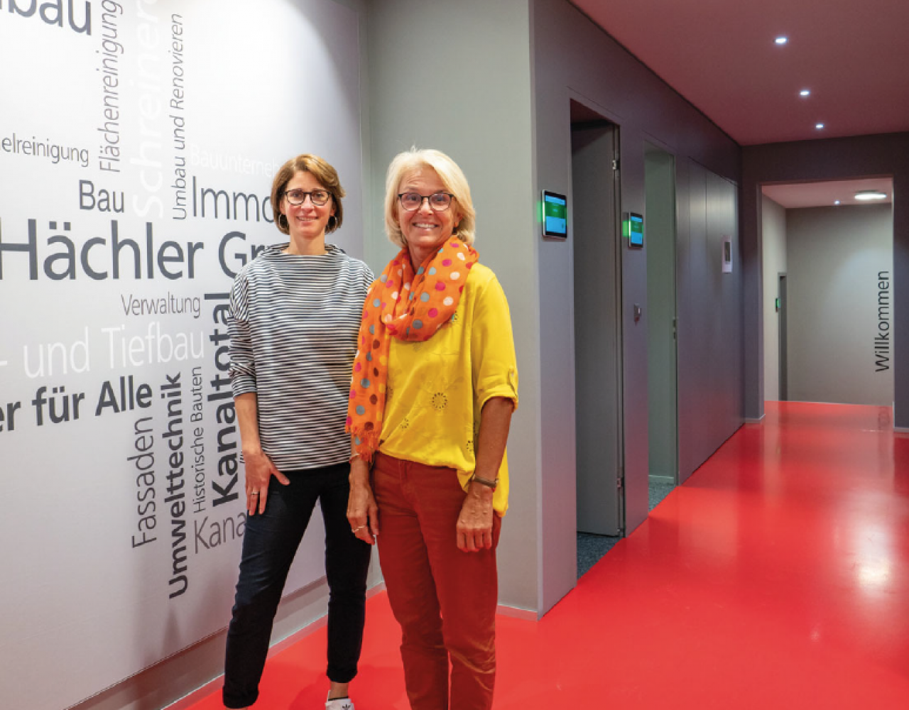 Miryam Sommerhalder, Leiterin Personalabteilung, und Andrea Schmid, Personalfachfrau, kümmern sich bei der Hächler-Gruppe um die Anliegen von 450 Mitarbeitenden. Sie wissen, was Arbeitgeberattraktivität bewirkt: «Unsere Mitarbeitenden arbeiten gerne hier, sie fühlen sich wohl und reden darüber. Das ist Gold wert.»