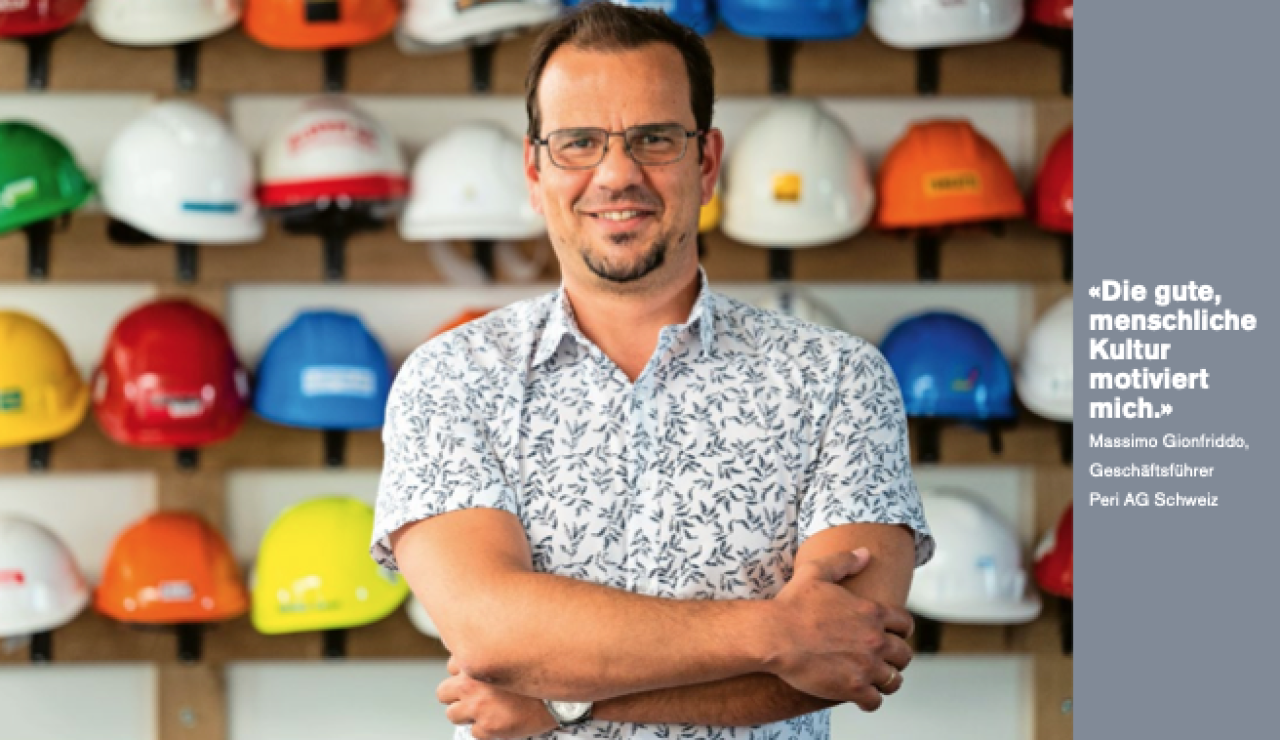 Schalungssysteme und Gerüstlösungen sind die Kernkompetenzen von PERI. Geschäftsführer Gionfriddo macht deutlich, mit welchen Werthaltungen sein Unternehmen dem Fachkräftemangel erfolgreich begegnet.«Meine wichtigste Aufgabe ist es, jeden Einzelnen, aber auch das gesamte Team zu motivieren, auf die gemeinsamen Ziele einzuschwören und so eine Stimmung zu erzeugen, in der alles möglich erscheint». Lesen Sie das packende Interview in der Kolumnen-Spalte und in der aktuellen Ausgabe der «baustellen».