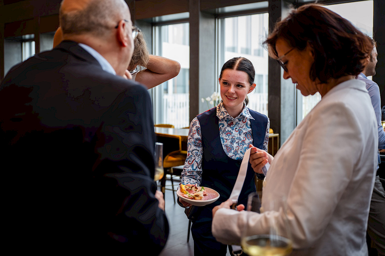 Susanne Kuntner zeigte sich sichtlich gerührt, als sie den rund 100 Gästen aus Bauwirtschaft und verwandten Branchen für Ihr Kommen dankte und sie zu einem ausgiebigen Apéro riche einlud. Sie bedankte sich bei ihrem Team, das einmal mehr Grosses leistete, bei Top-Speaker Georges T. Roos, der die Zuhörenden mit 16 Megatrends in seinen Bann zog, sowie beim Team der Avatarion Technology, das mit seinen Künstlichen Intelligenzen Nao und Pepper packende Akzente setzte. Die Stimmung bei bester kulinarischer Bewirtung und spannenden Gesprächen war laut vielen Besucherinnen und Besuchern emotionaler, herzlicher und wertschätzender denn je. Ob Corona der Grund dafür war? Oder doch das magische Flair des Vortrag-Themas?